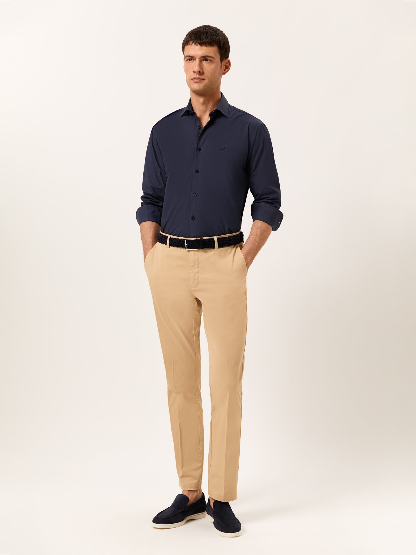 Slim Fit Garment Dye Poplin Open Shirt in Comfort Cotton