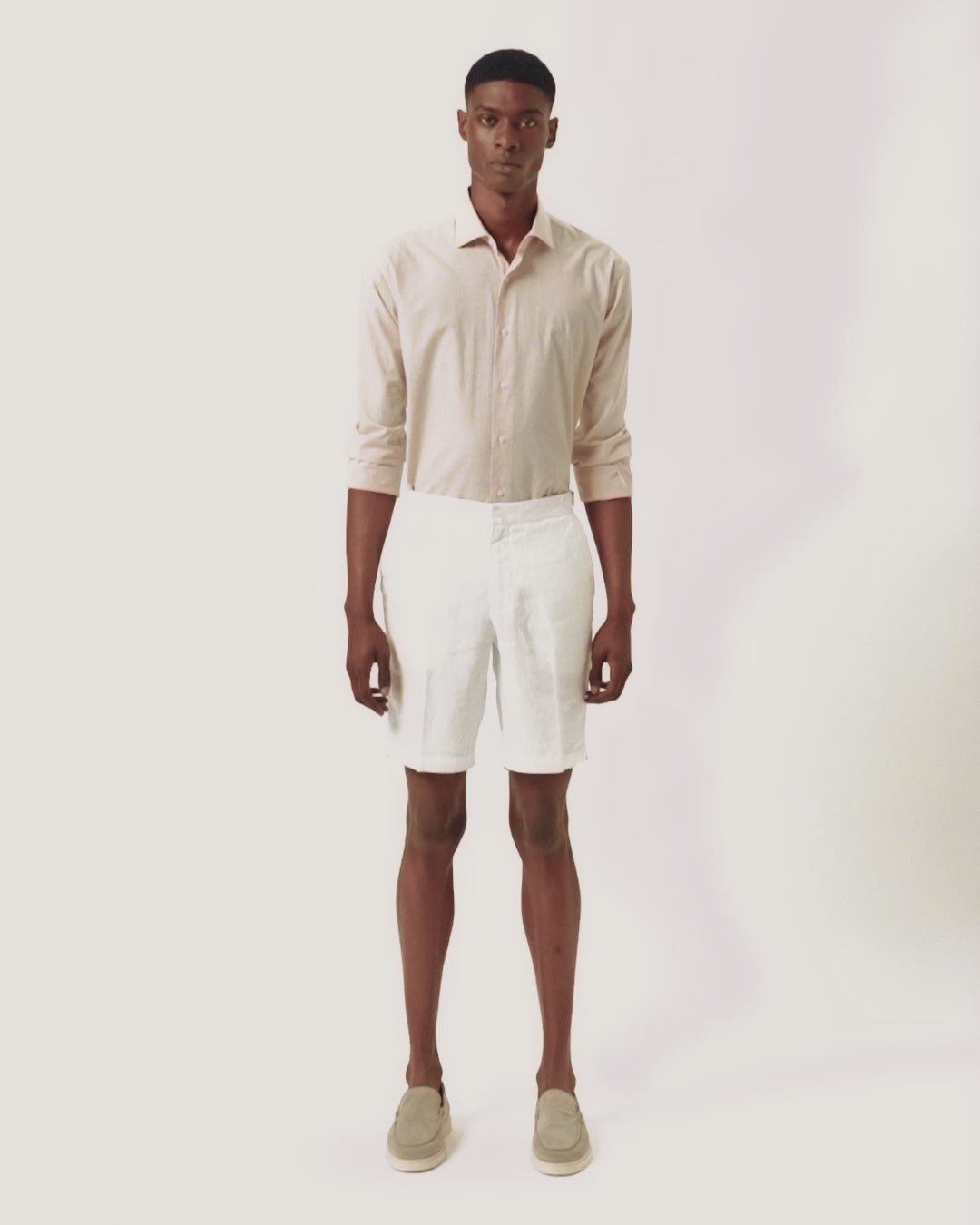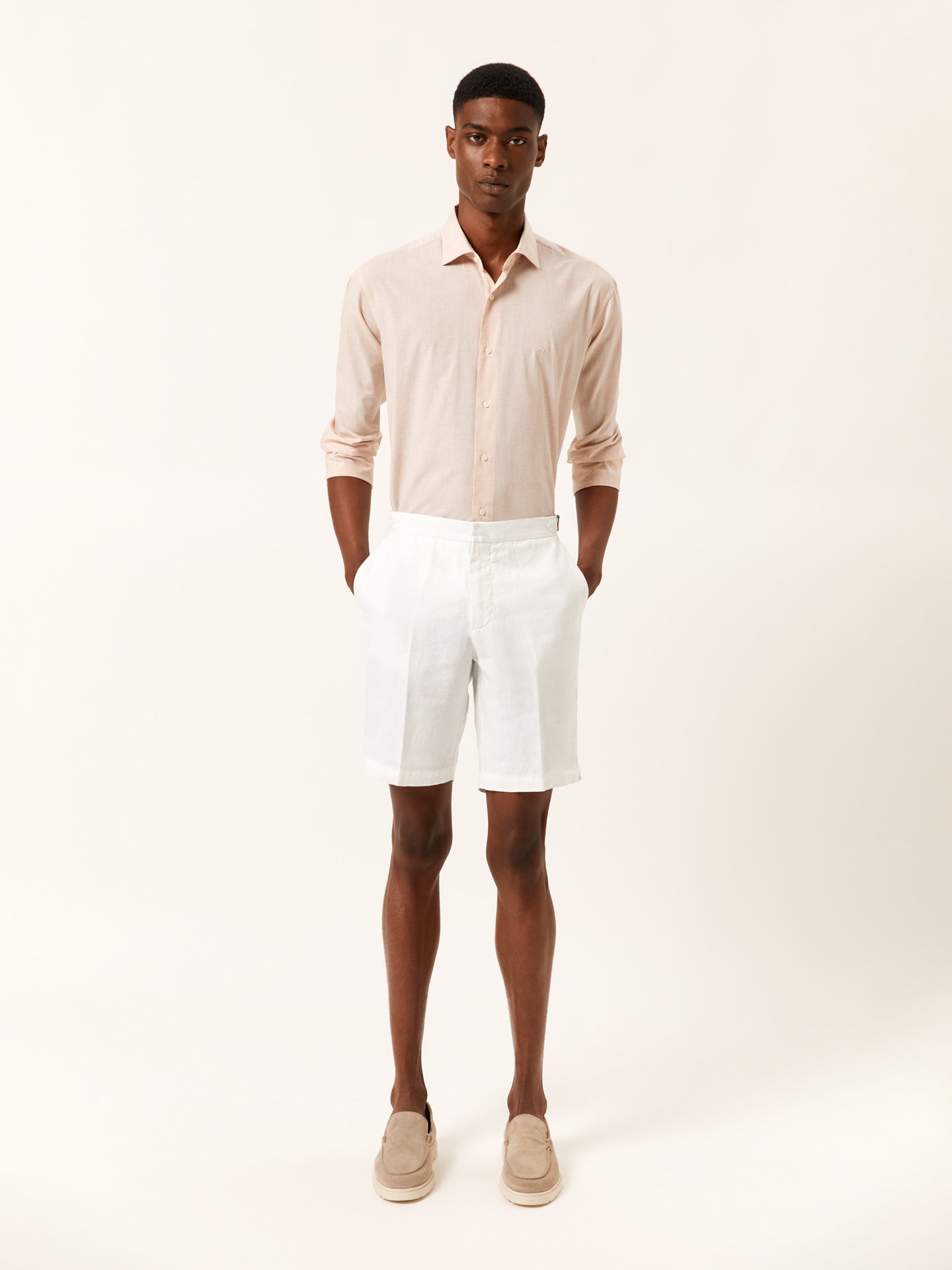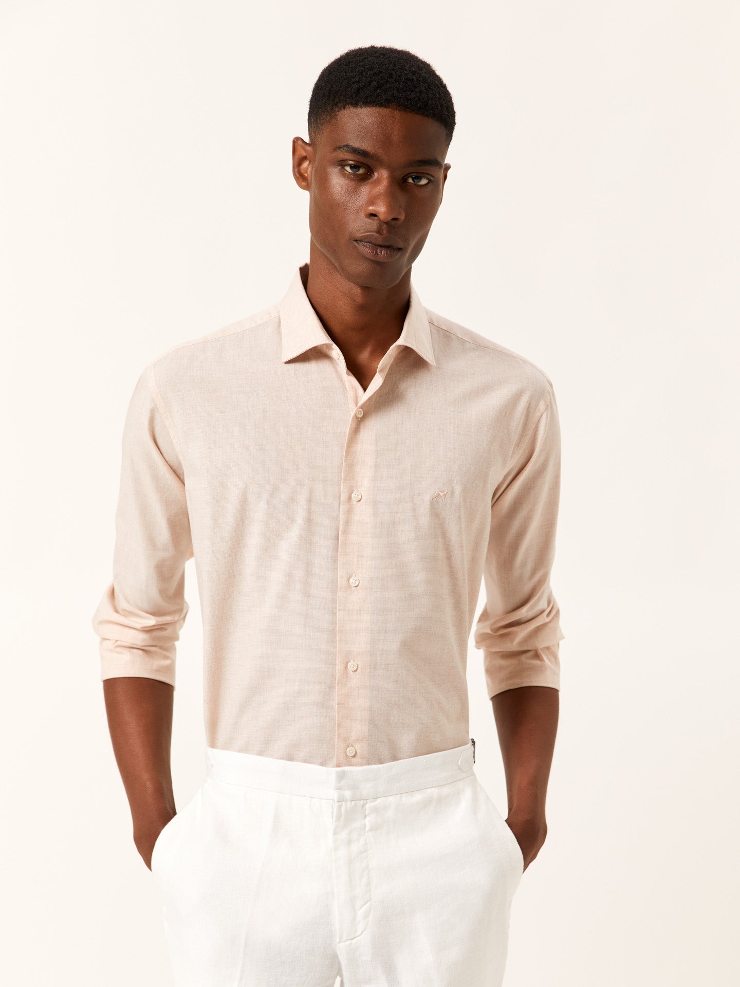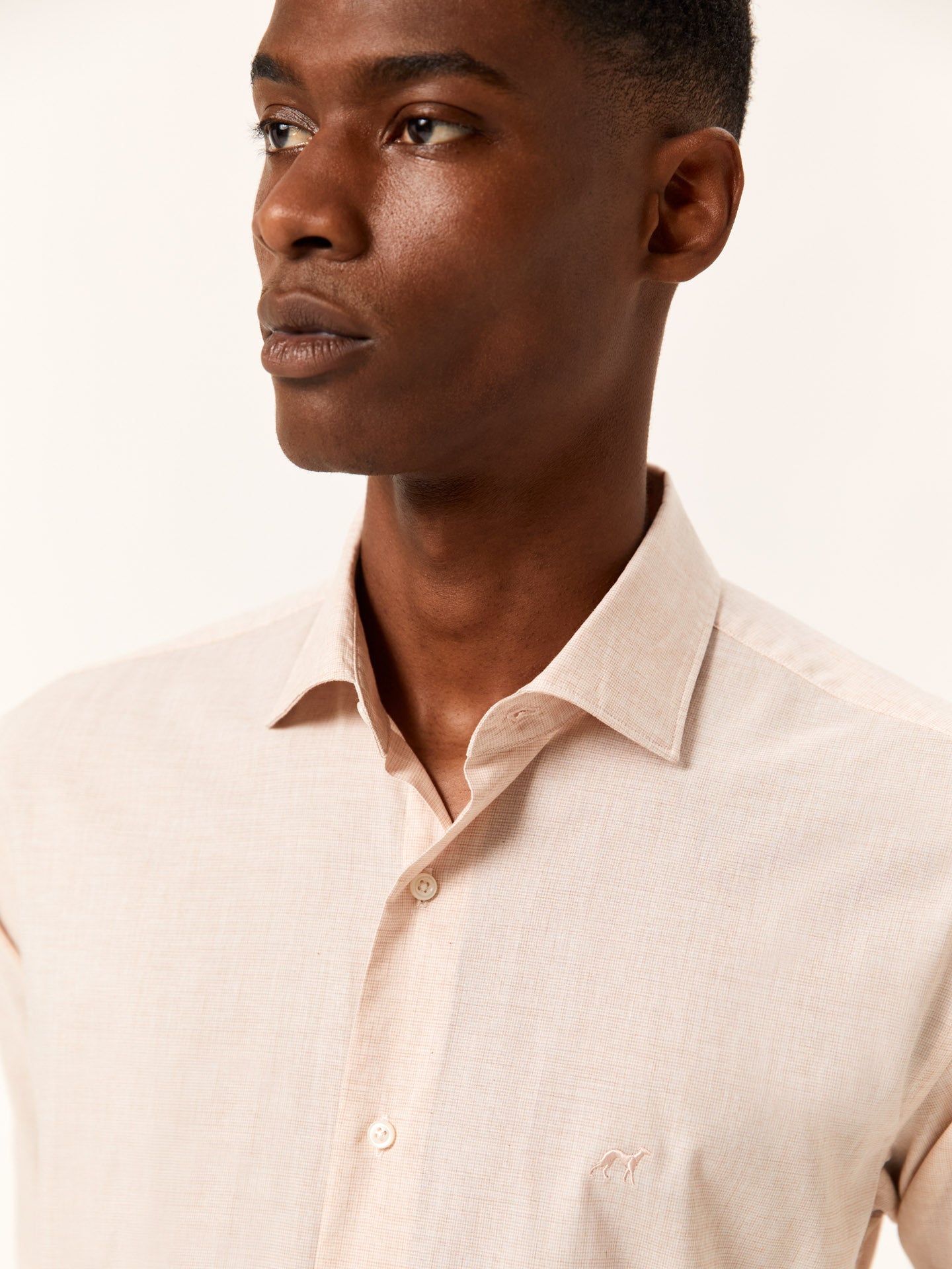 Slim Fit Houndstooth Cotton Poplin Shirt with Open Collar