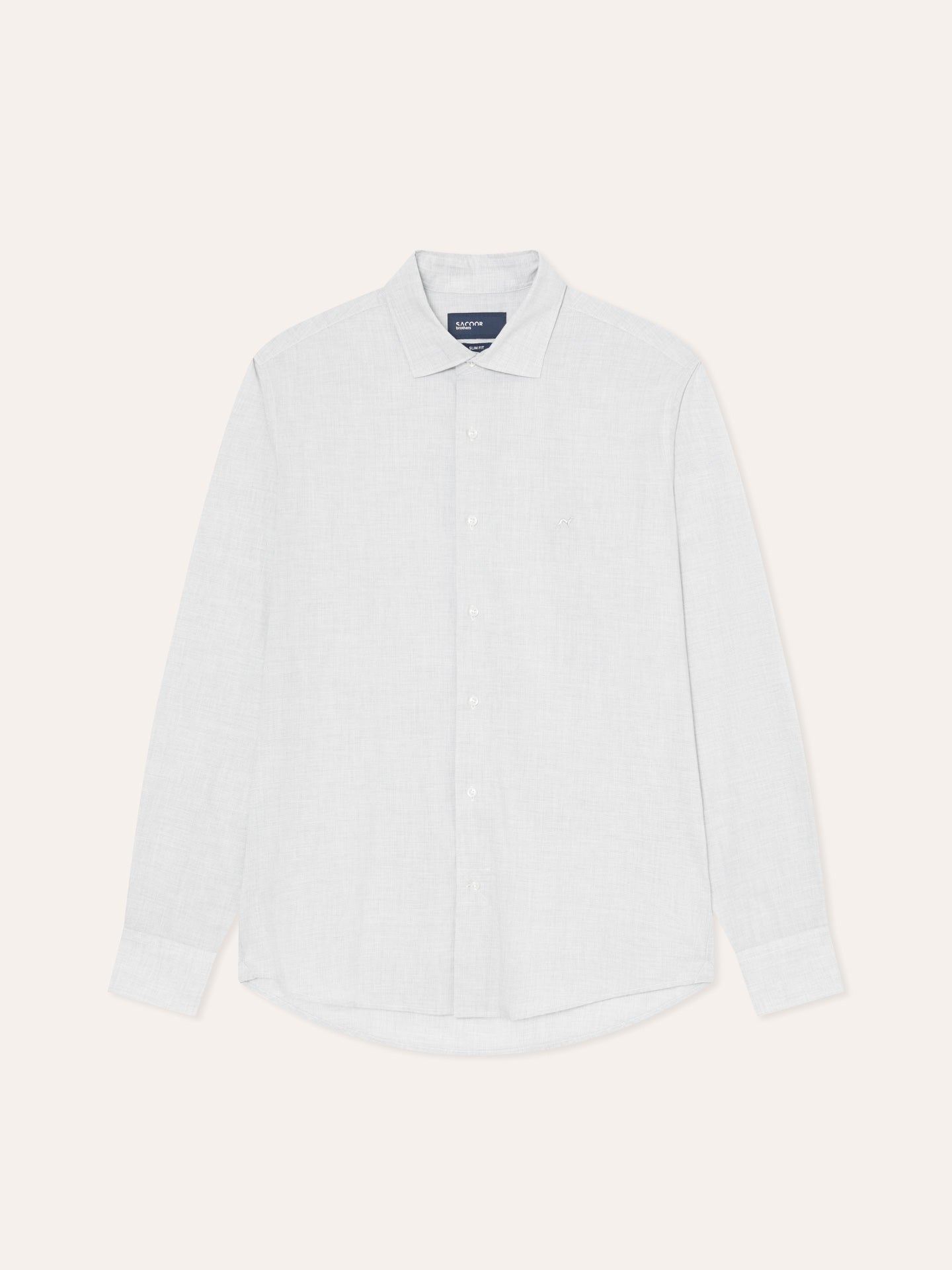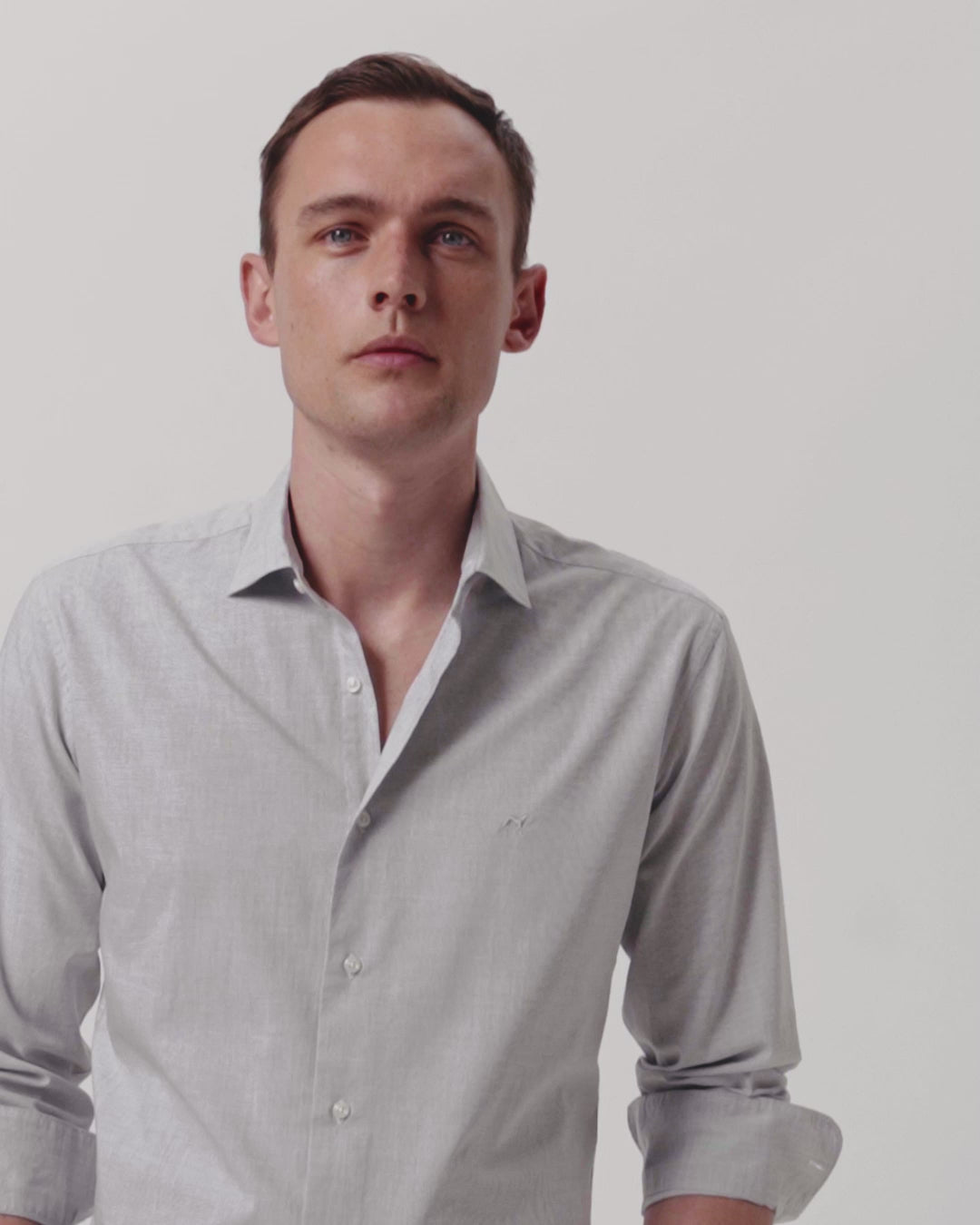 Slim Fit Houndstooth Cotton Poplin Shirt with Open Collar
