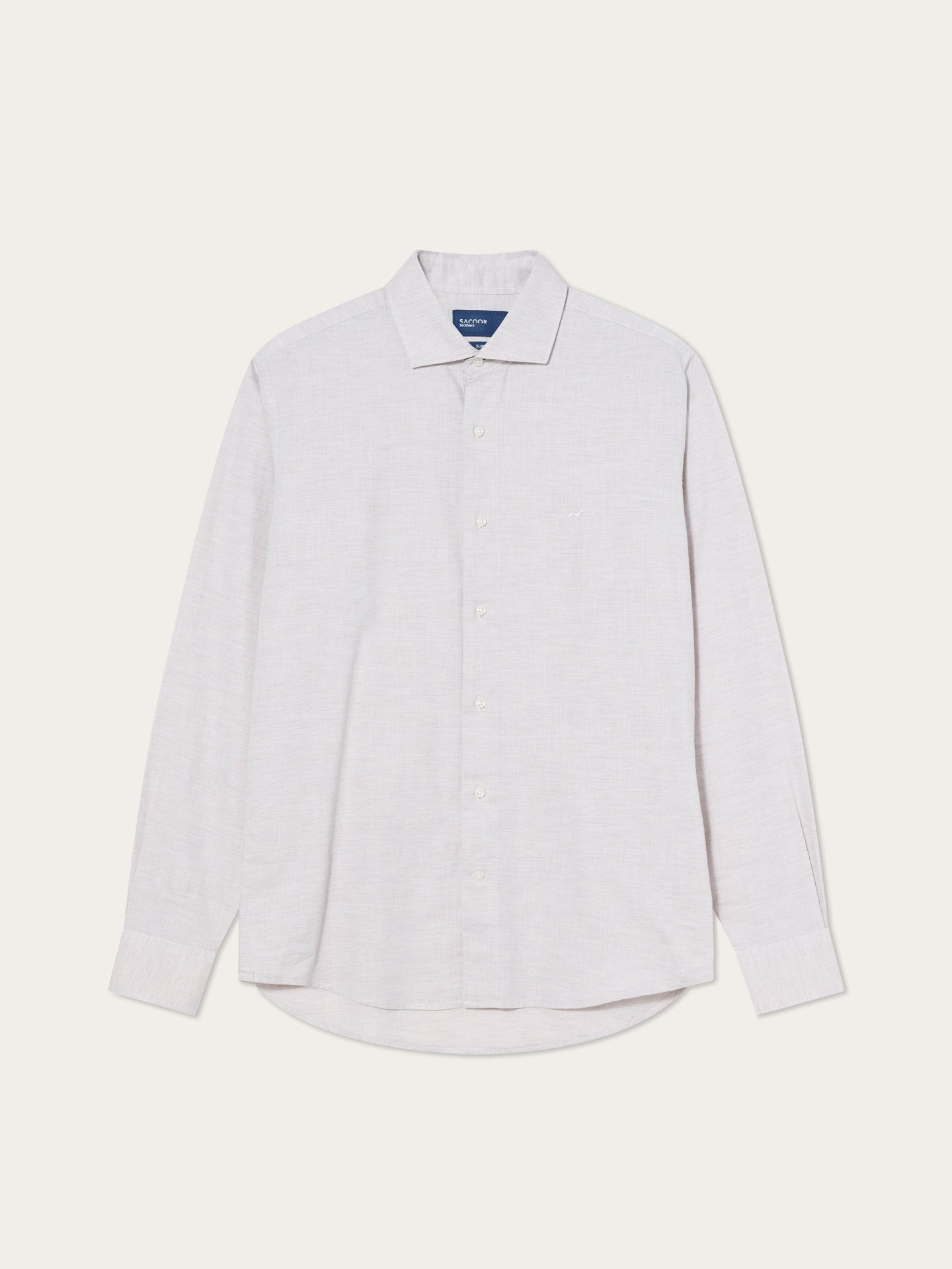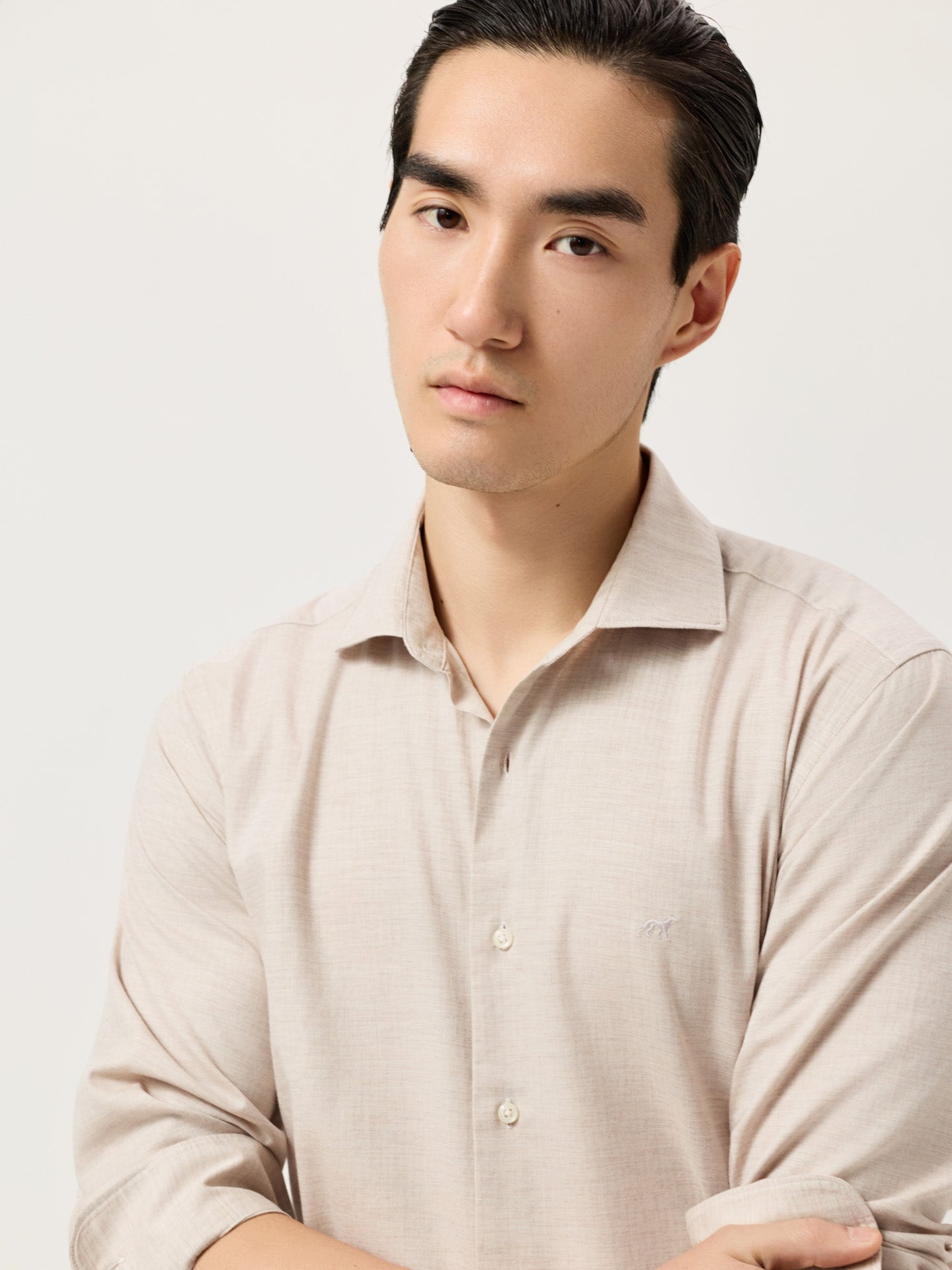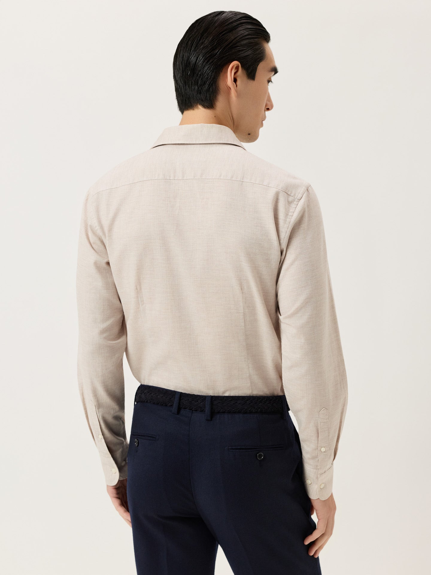 Slim Fit Mélange Herringbone Shirt With Open Collar