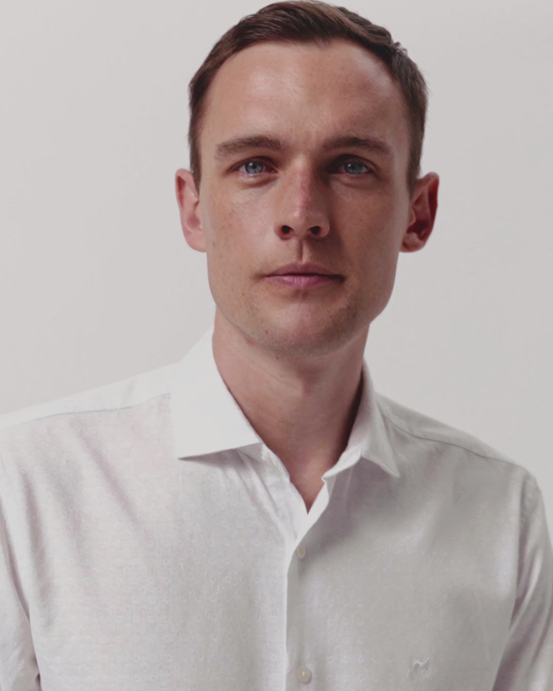 Slim Fit Pattern Jacquard Cotton Linen Shirt with Open Collar