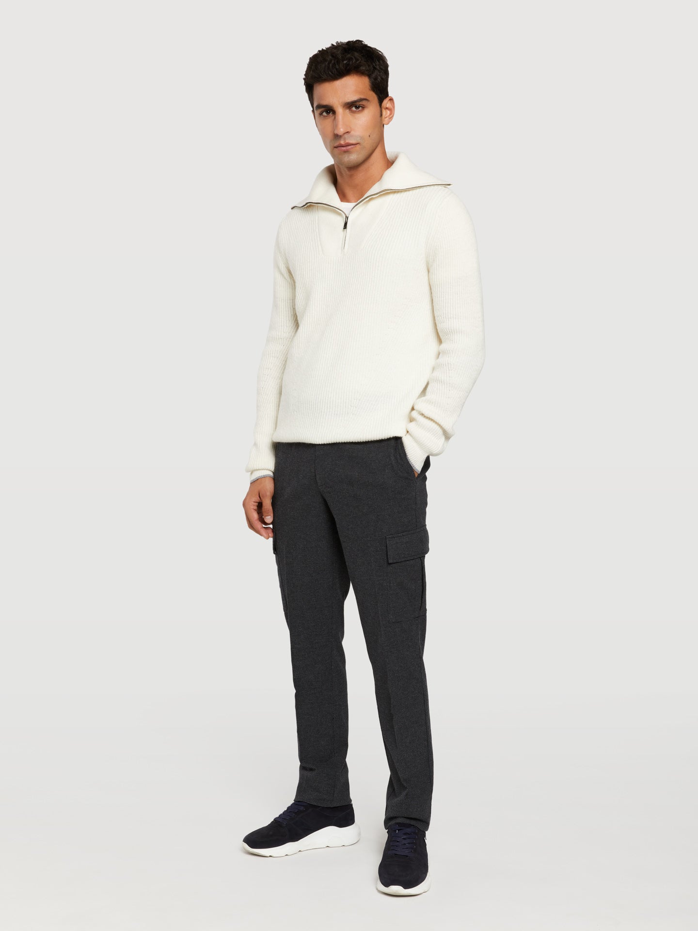 Slim fit pied-de-poule cargo trousers