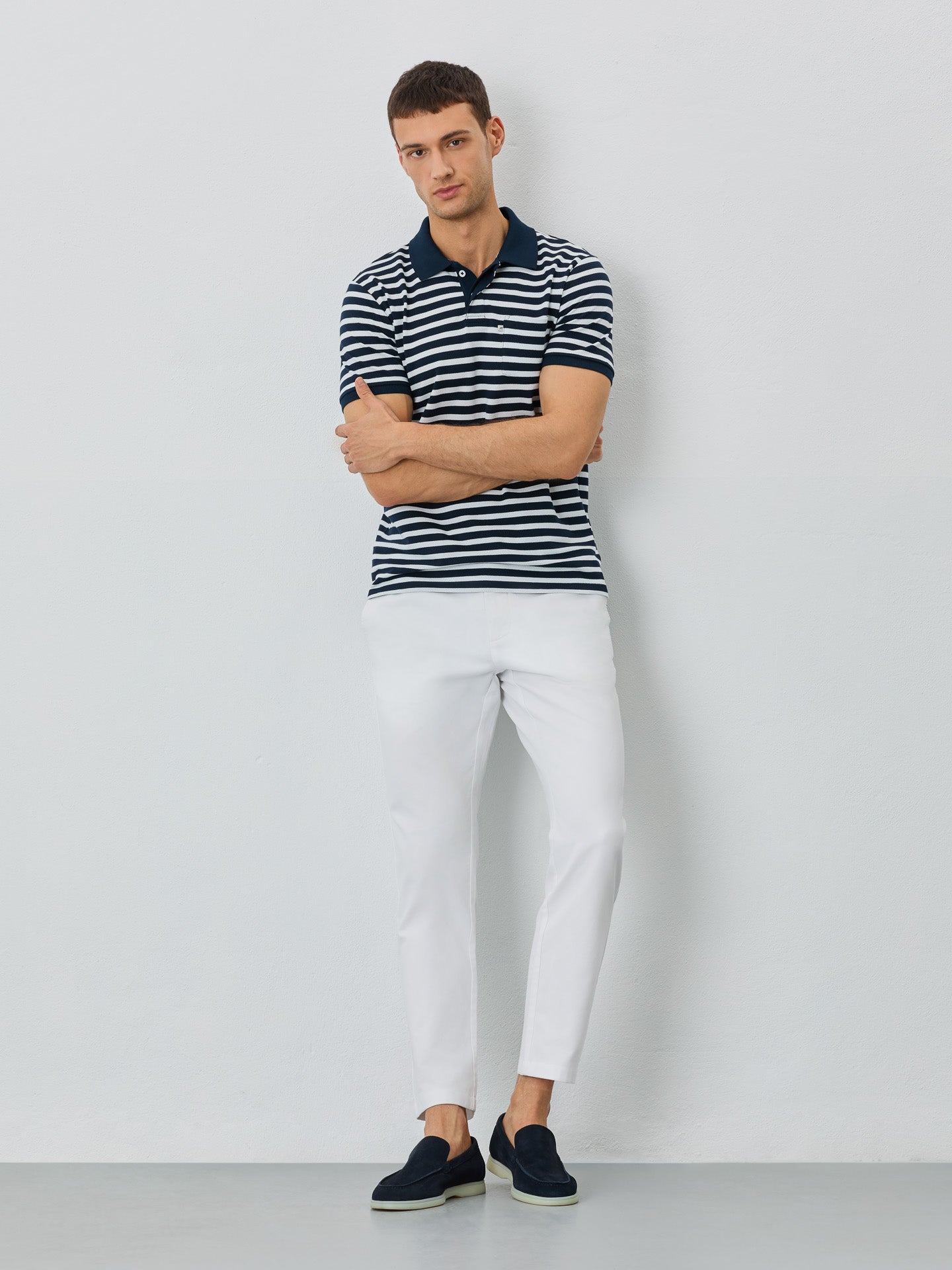 Slim Fit Piqué Polo With Chest Pocket In BCI Cotton With Stripes