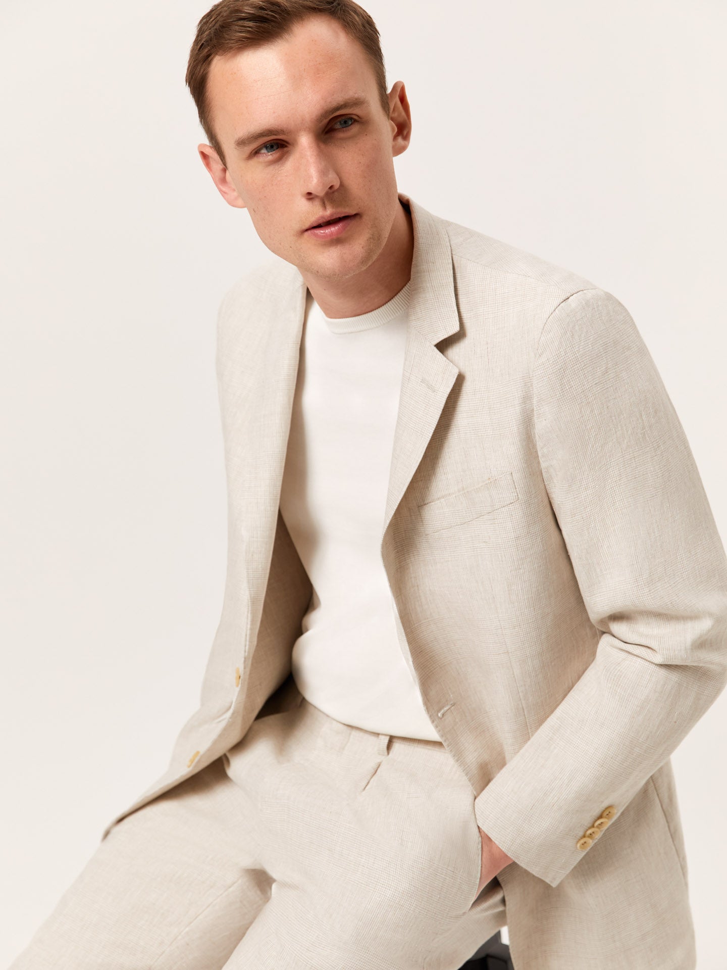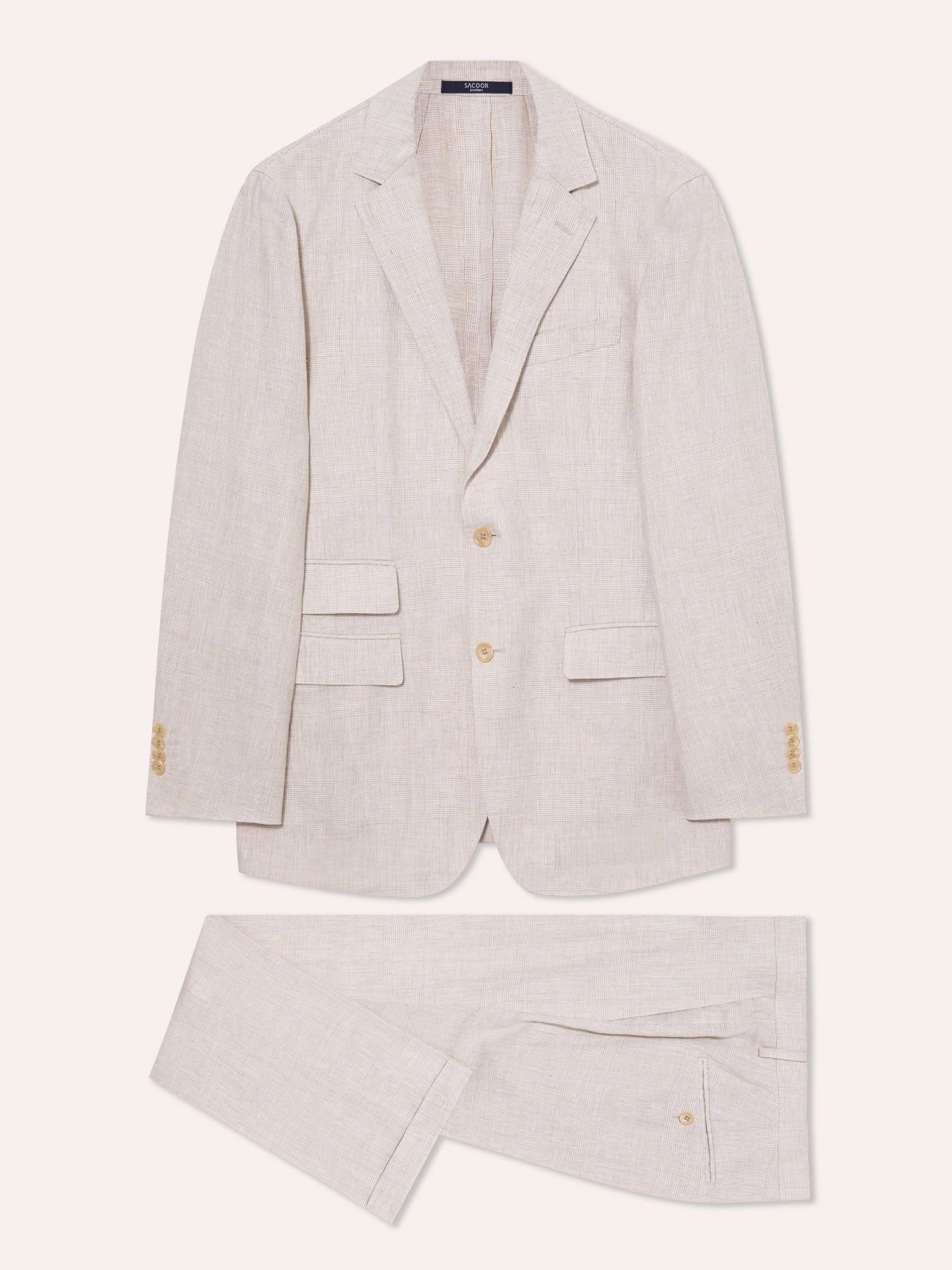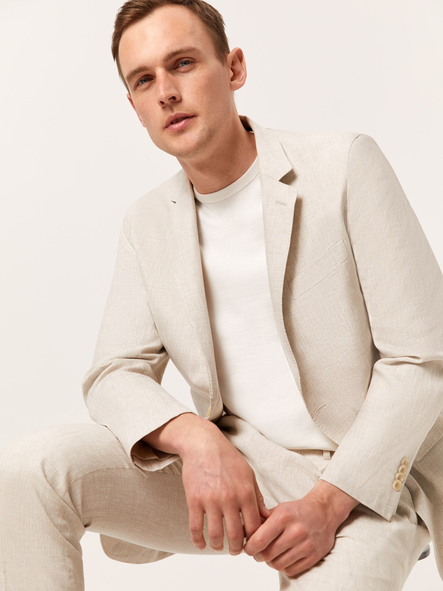 Slim Fit Prince of Wales Check Suit in Pure Linen