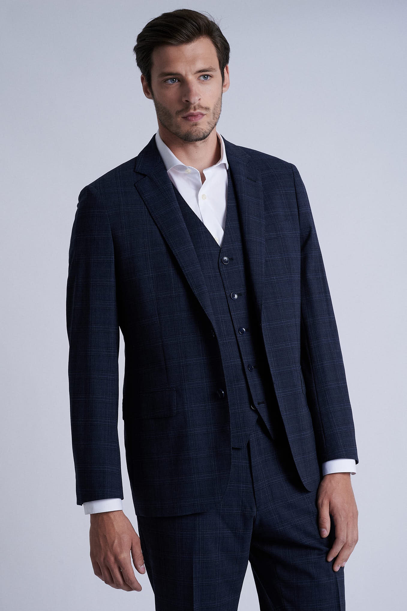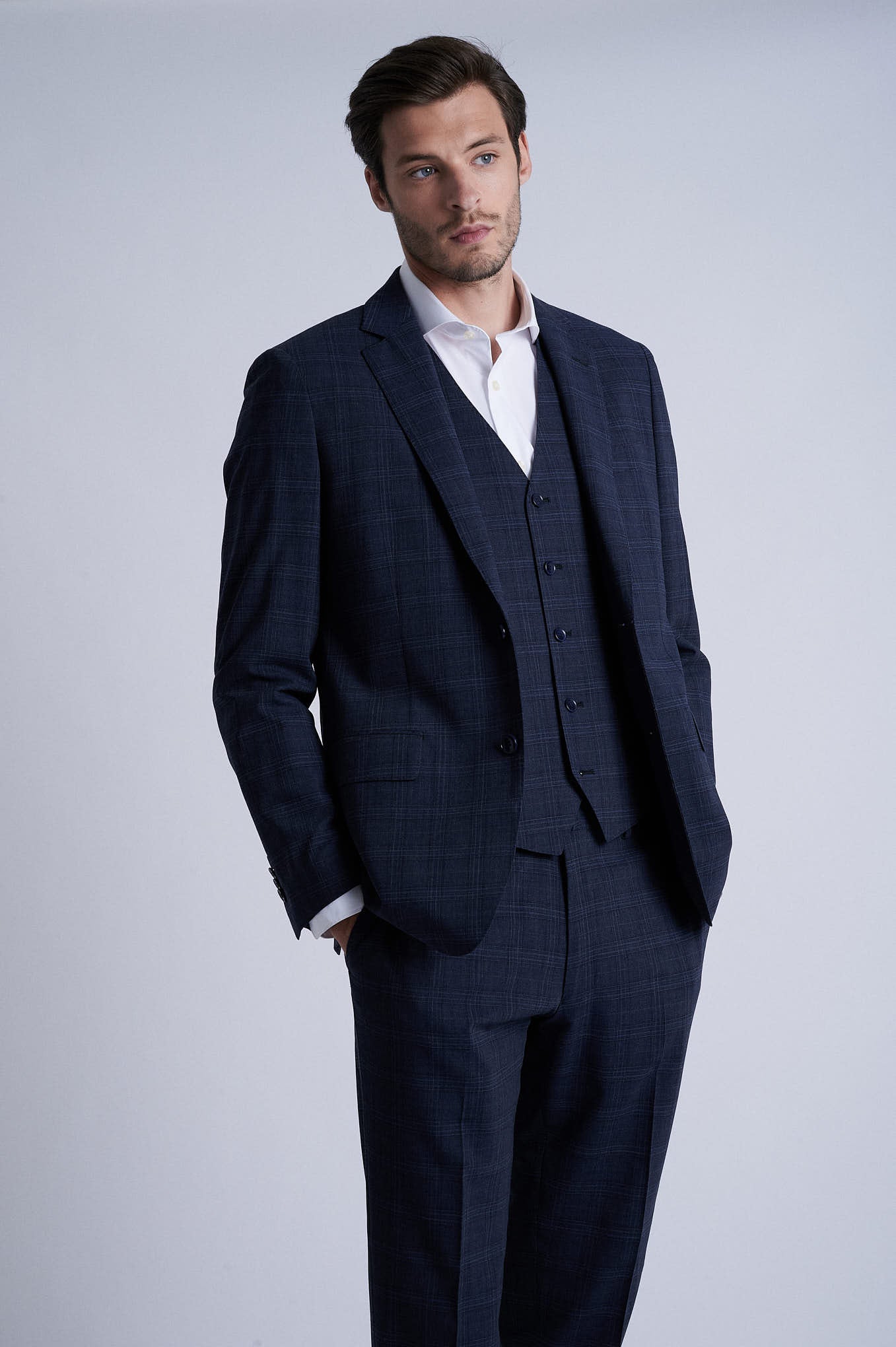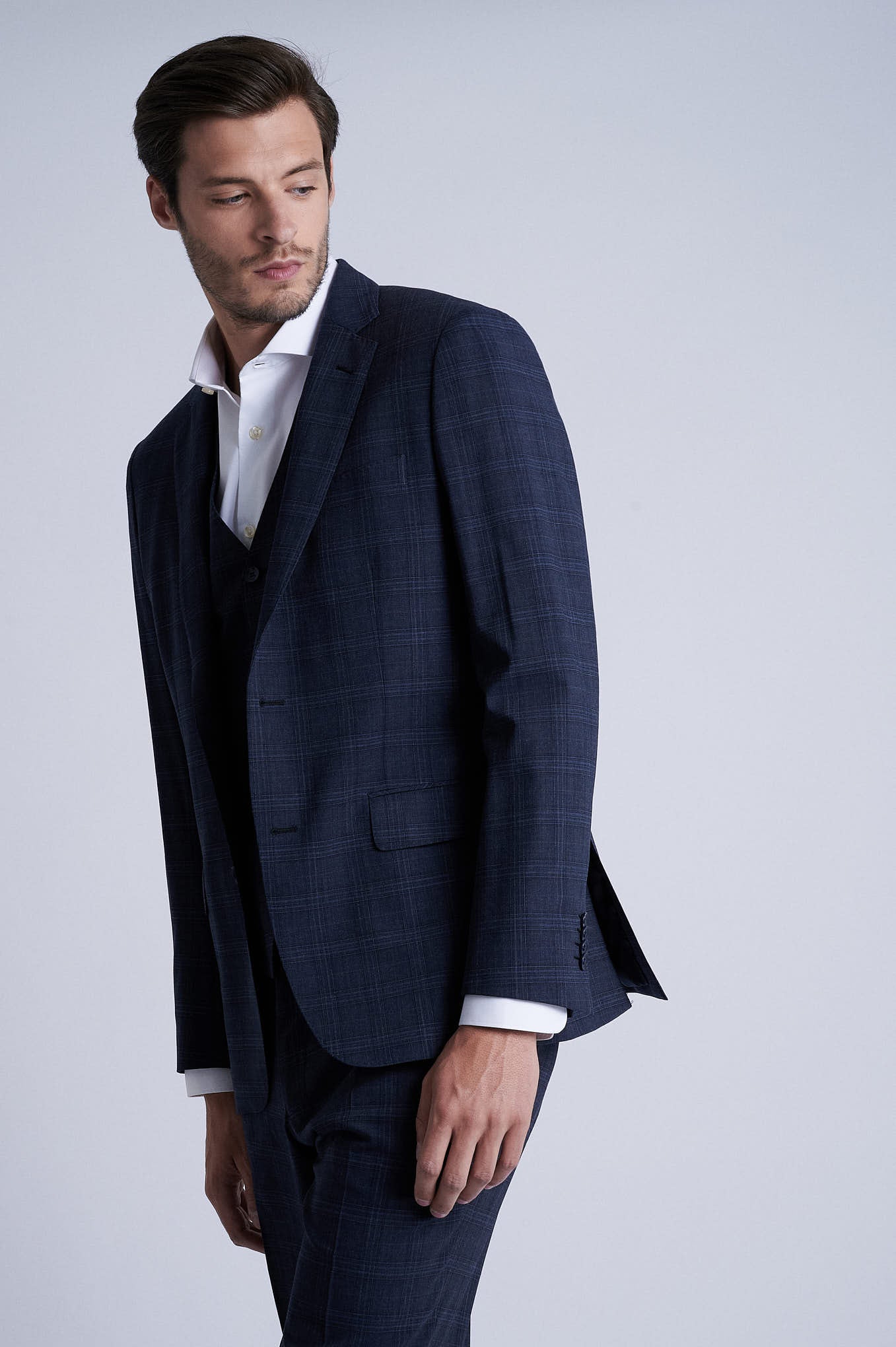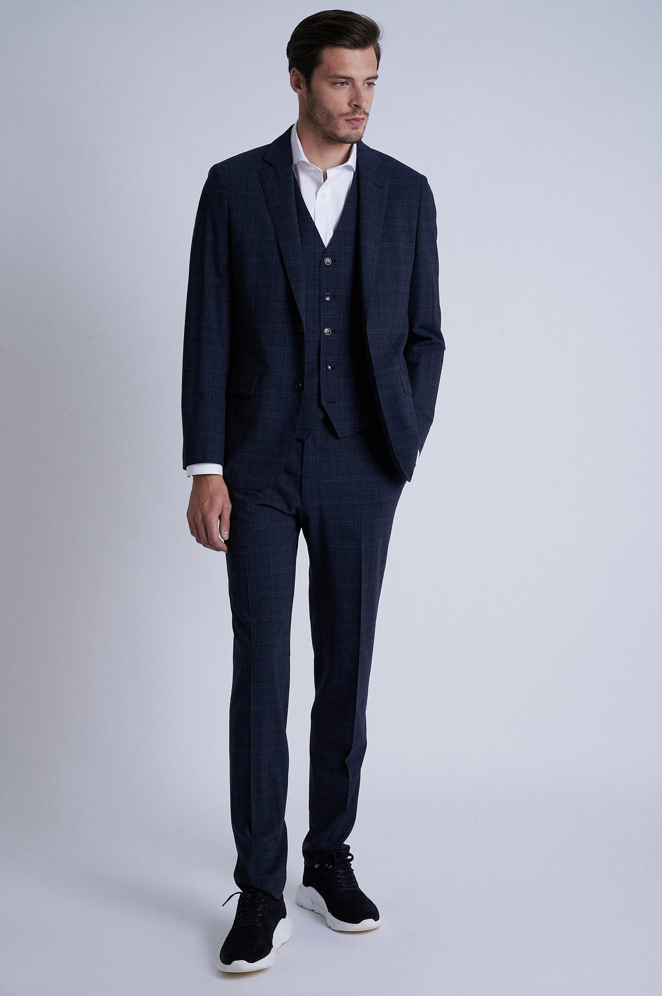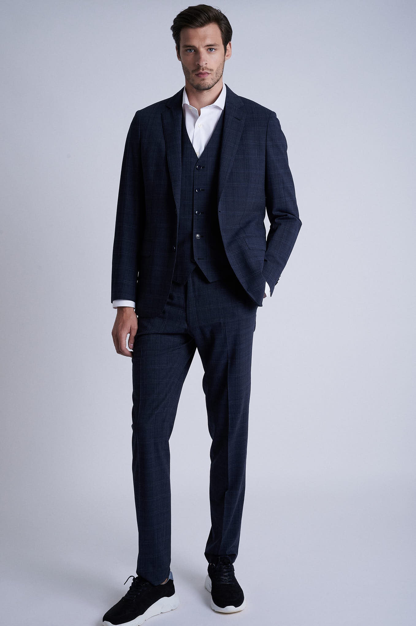 Slim fit stretch blended wool 3 pieces suit half canvas construction Anti-crease finishing