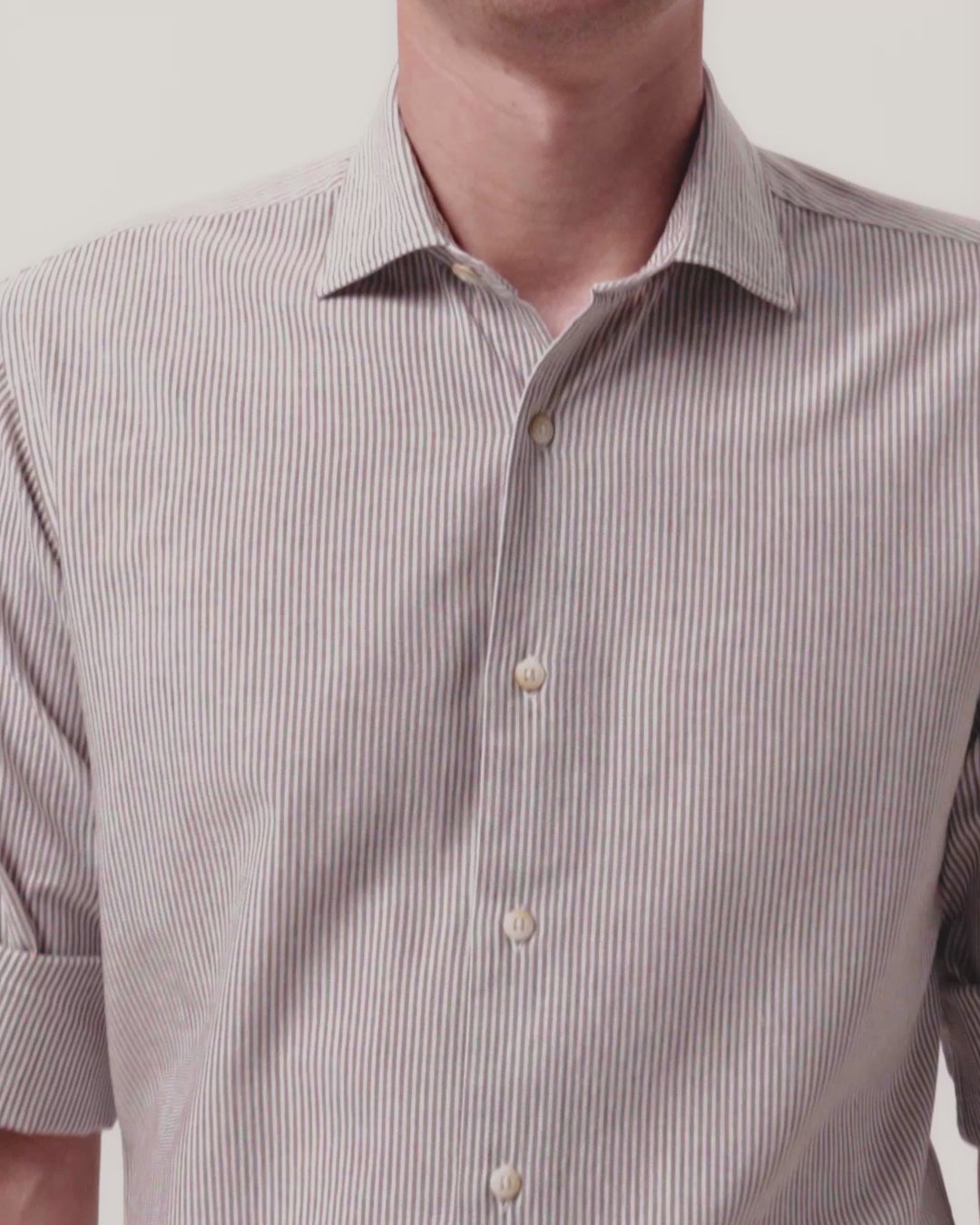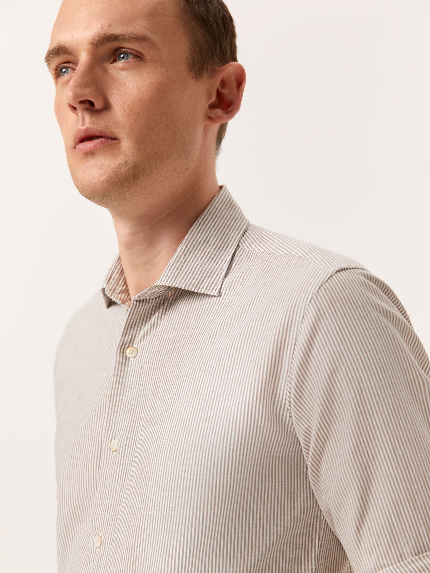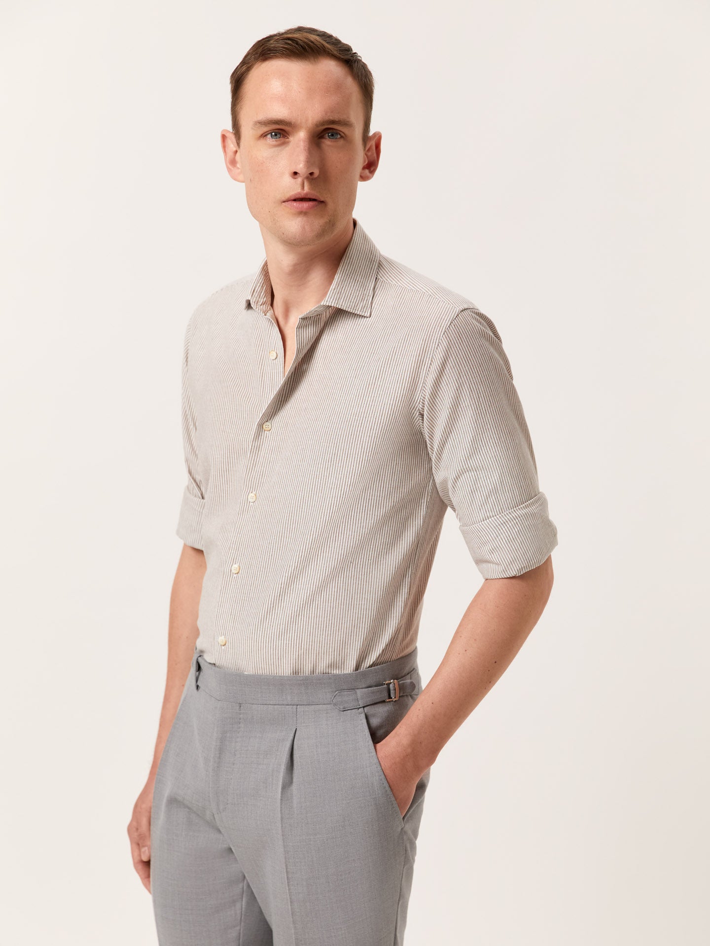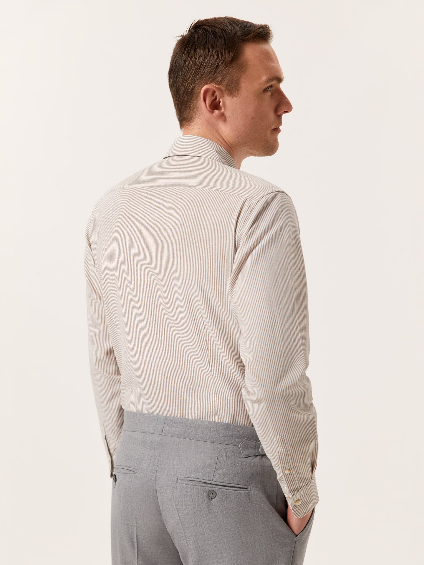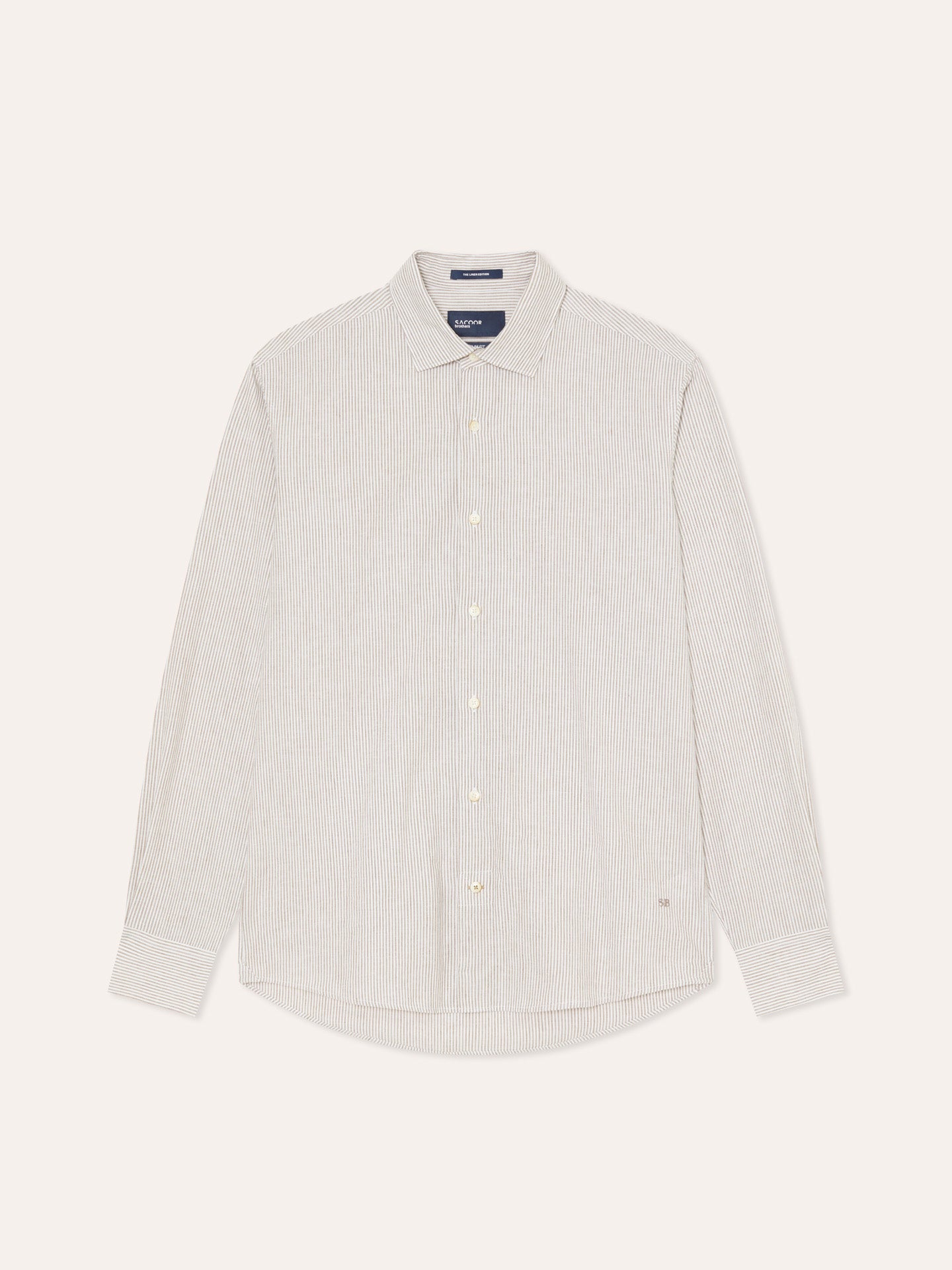 Slim Fit Striped Cotton Linen Shirt with Open Collar