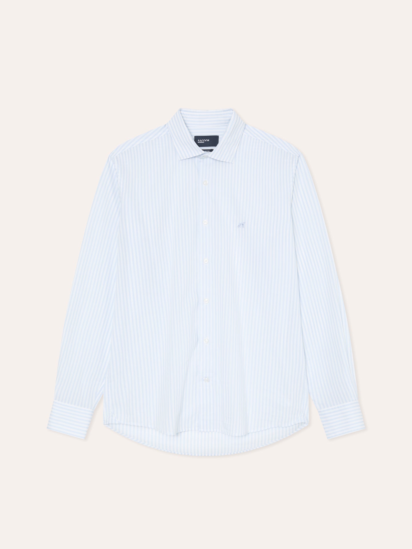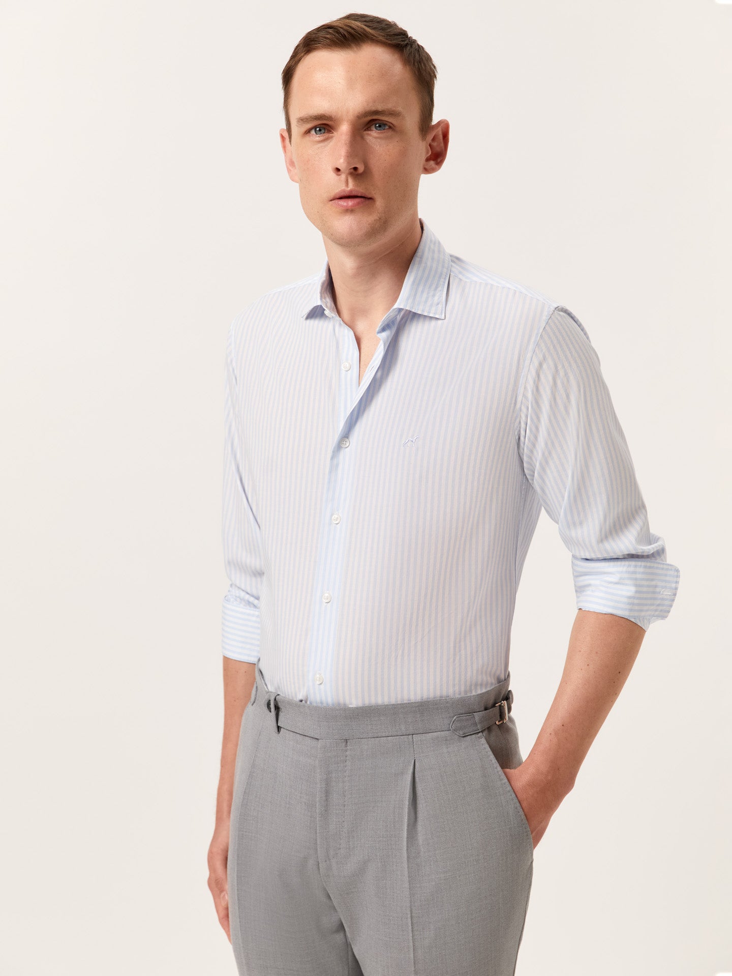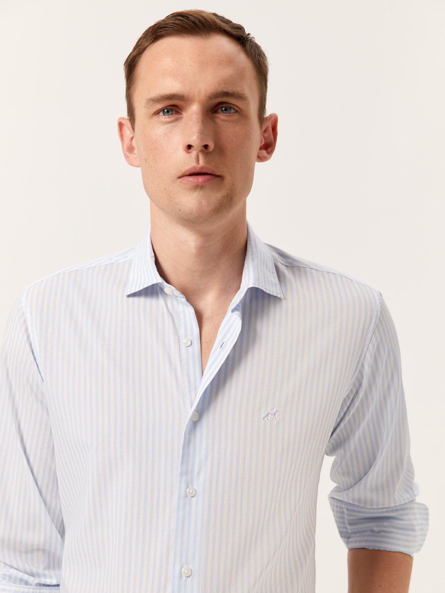 Slim Fit Striped Shirt in BCI Cotton with Open Collar