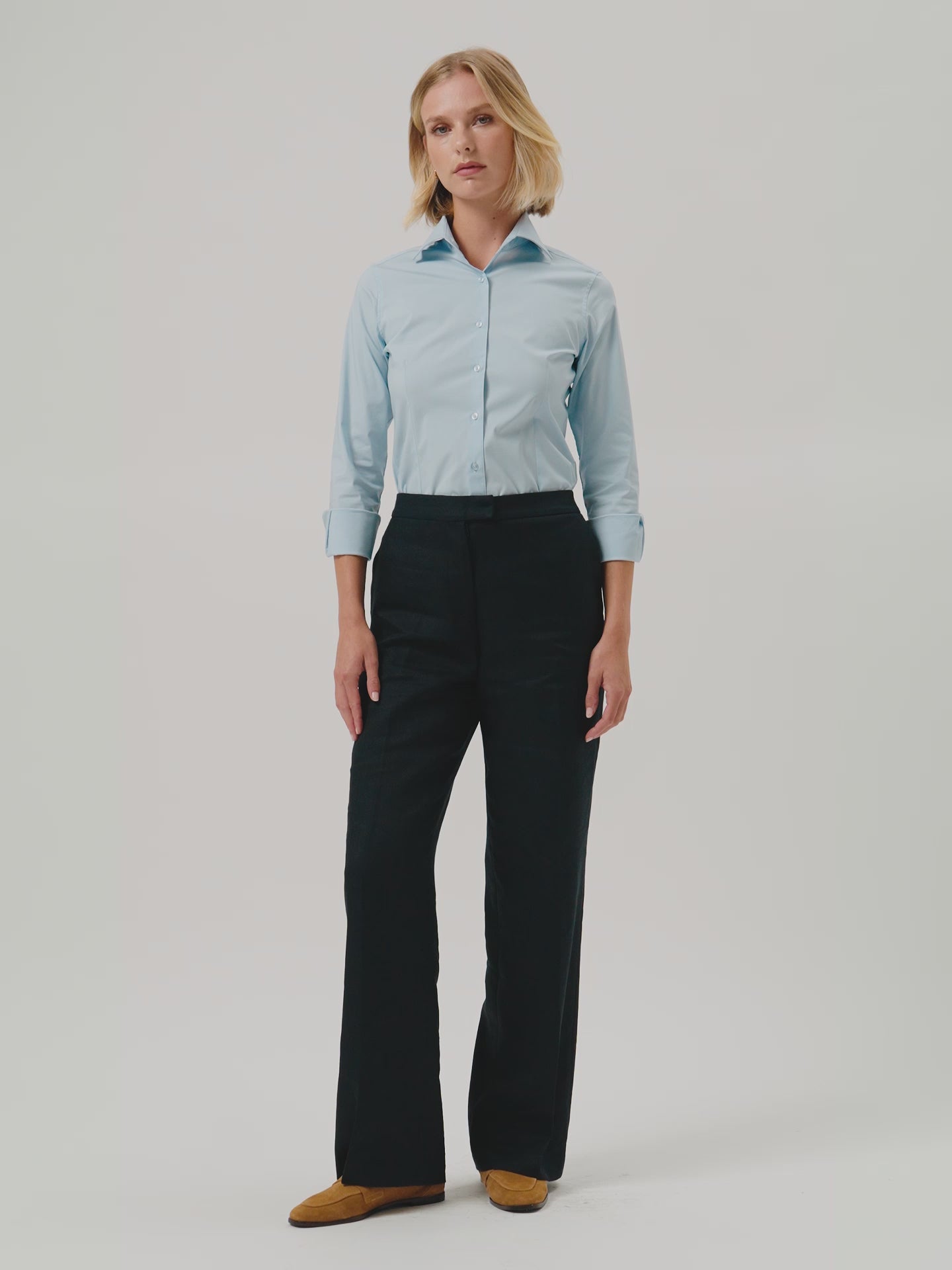 Slim Fit Travel Plain Comfort Poplin Shirt With Open Collar