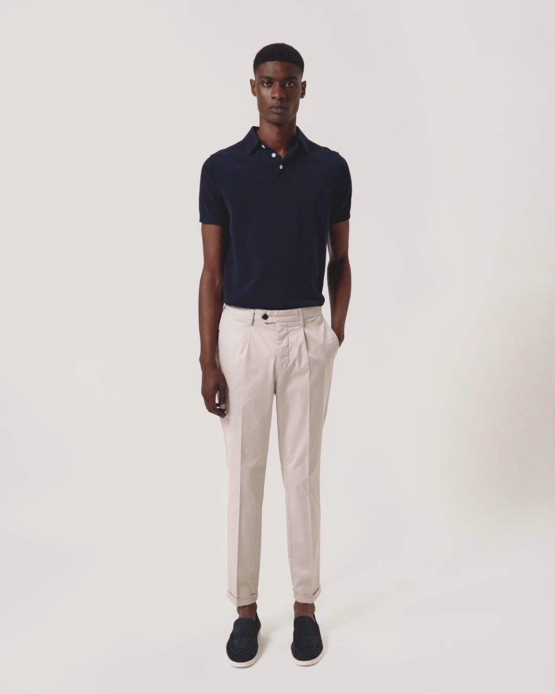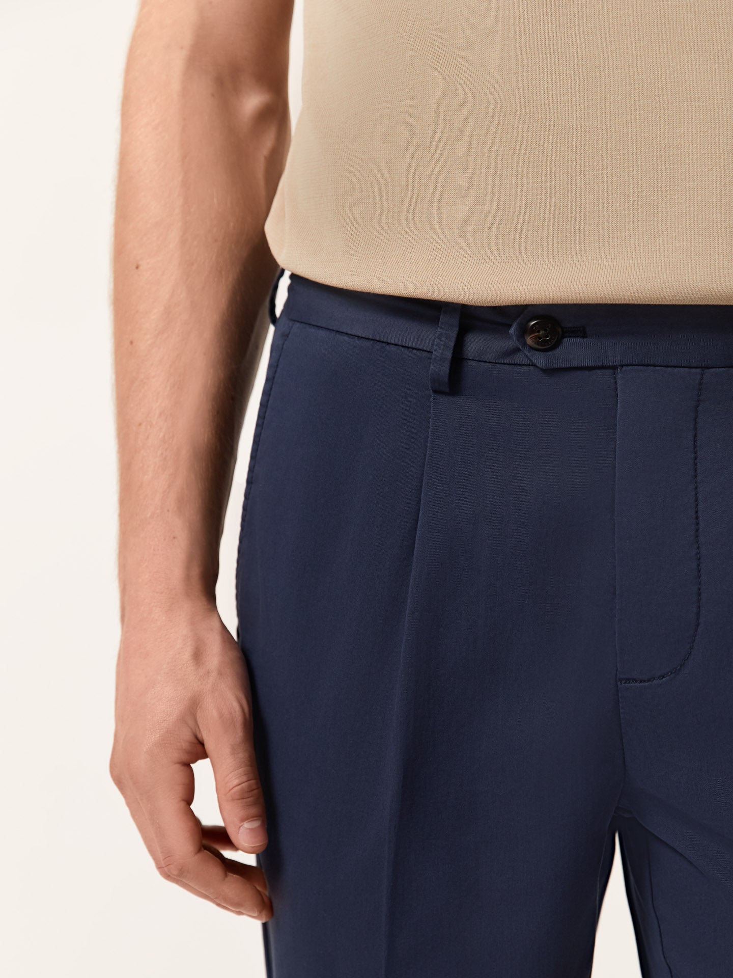 Slim fit Twill Garment Dye Casual Trousers with pleats