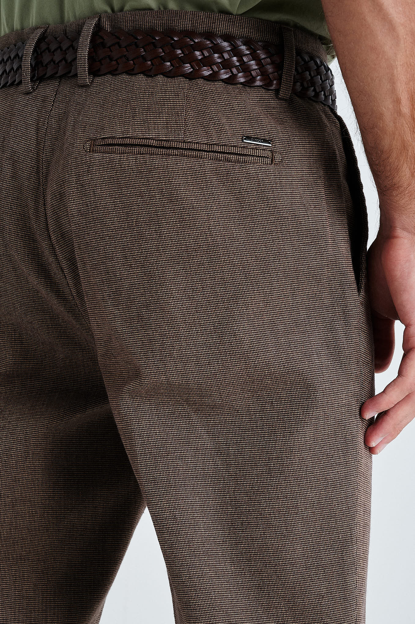 Slim fit windowpane check BCI cotton chino trousers
