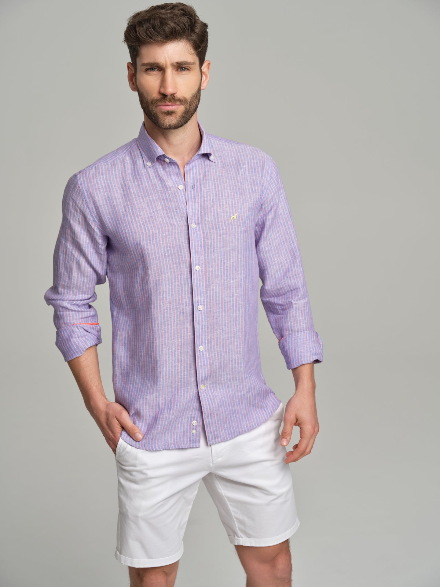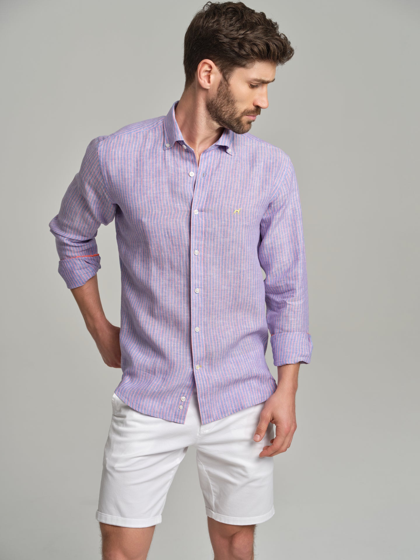 The Fluor Edition slim fit sport striped linen shirt
